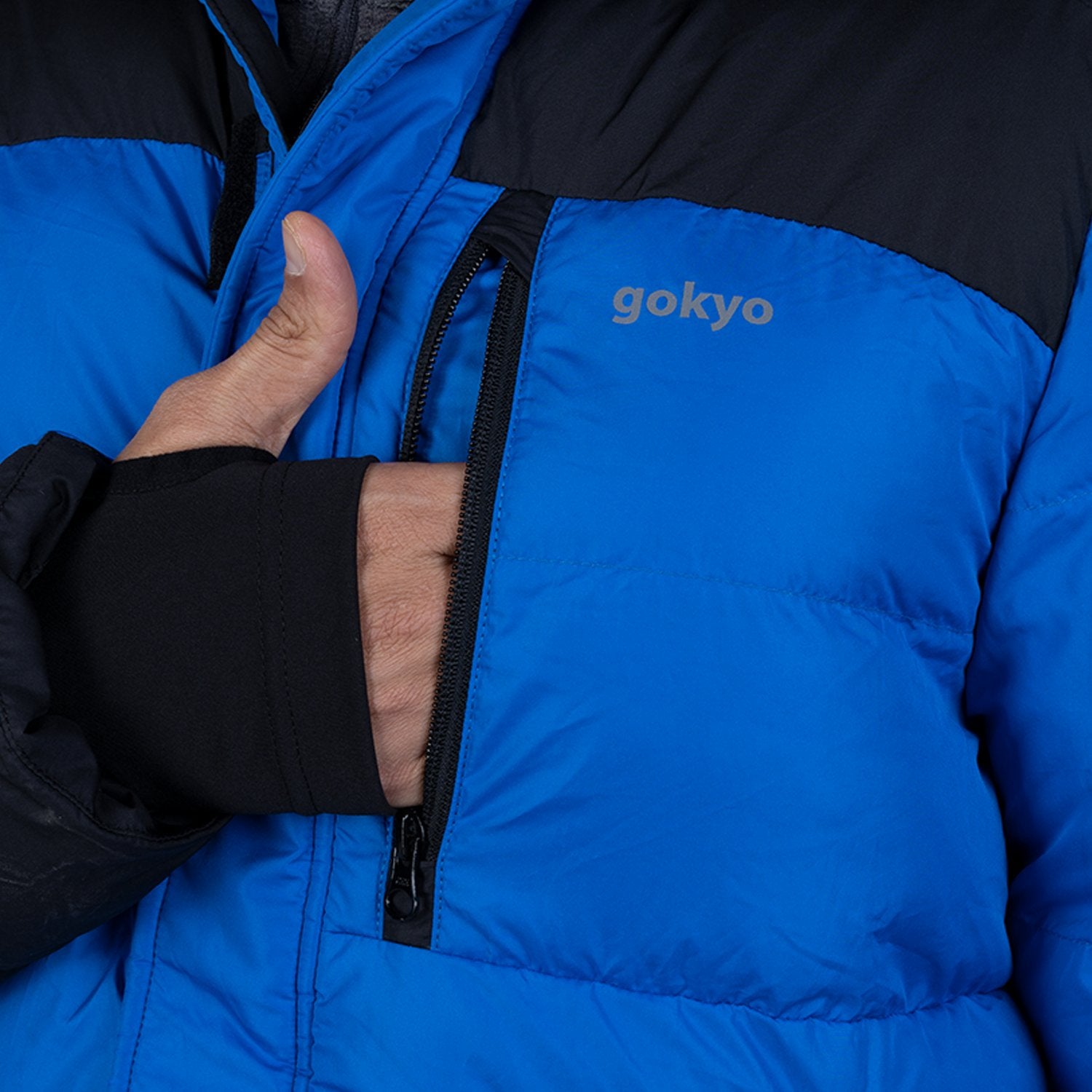 Introducing the Annapurna Jacket from Gokyo's Sherpa Series, designed for minus 20 degrees. This jacket is a fortress against the freeze, featuring a fixed hood for maximum protection and an attached wrist cover for extra insulation. Its advanced locking system ensures no cold sneaks through the zipper, reinforced with a Velcro overlay for additional security. Adjustable cuffs allow for a tailored fit, while the superior down fill provides unparalleled warmth. This jacket doesn't just protect; it cocoons you in comfort, making it essential for anyone challenging the frigid outdoors. Invest in Gokyo's Annapurna Jacket for your next cold-weather adventure and experience comfort and warmth like never before.